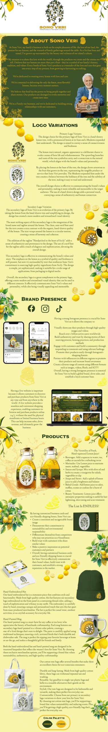 @macayla.ip Brand Identity for Sono Veri. Sono Veri is a family's business that is built on the simple pleasures of life: the love of our land, the passion for our lemons, and the warmth of family gatherings around the table. To learn more about Sono Veri scroll through the slides. If you're interested in hiring a graphic designer contact me at designbymips@gmail.com Thank you for this brand briefing @brand.brief #brandbriefsonoveri ♬ Dolce Nonna - Wayne Jones & Amy Hayashi-Jones